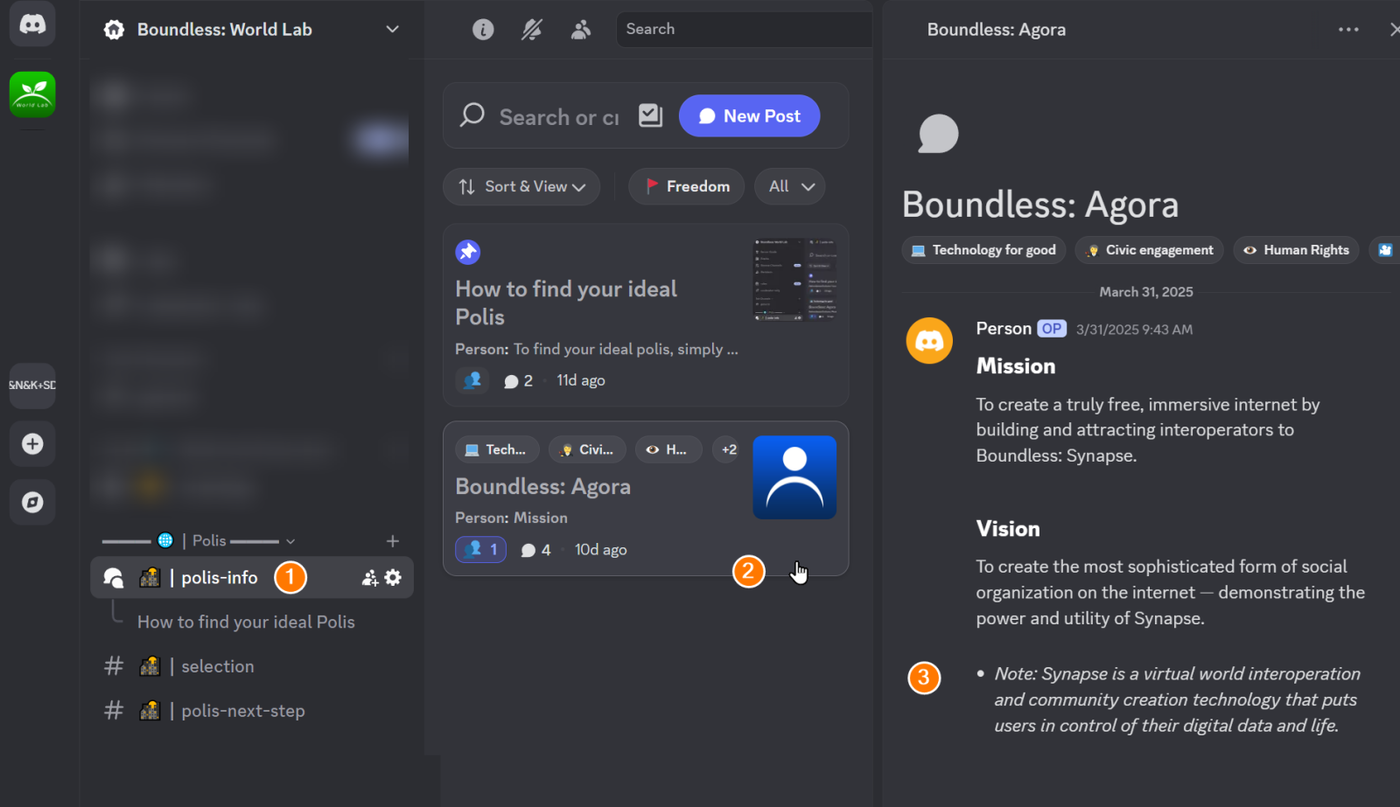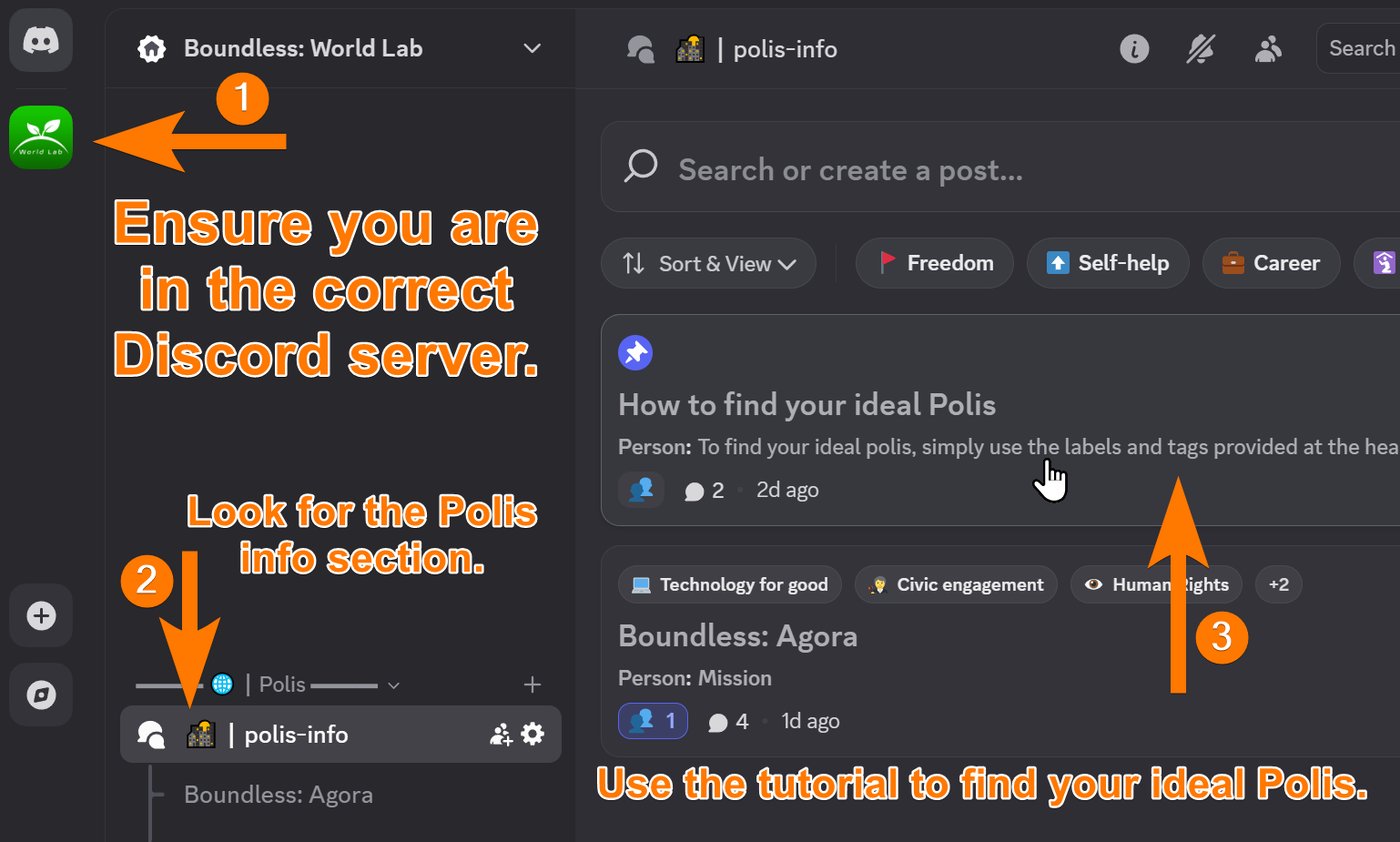 - (2) Look for the 🌇┃polis-info section